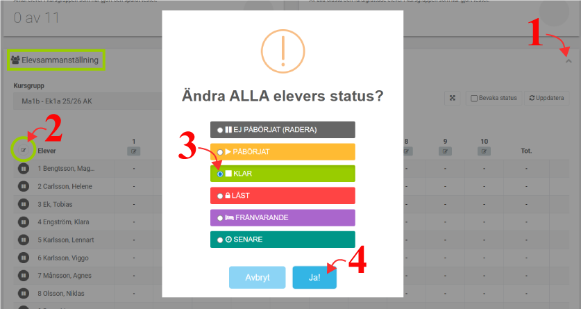 - Sätt alla elever status till