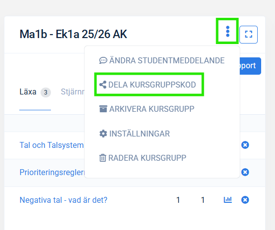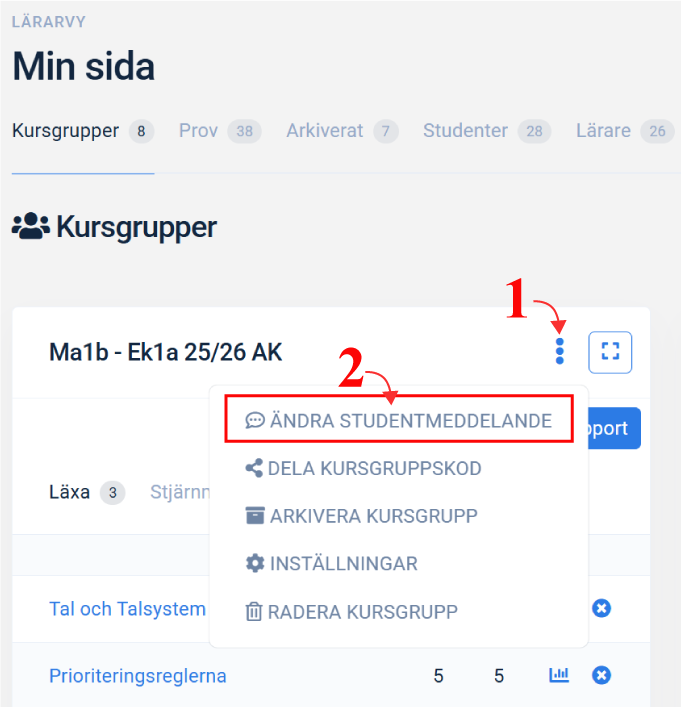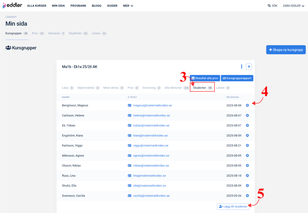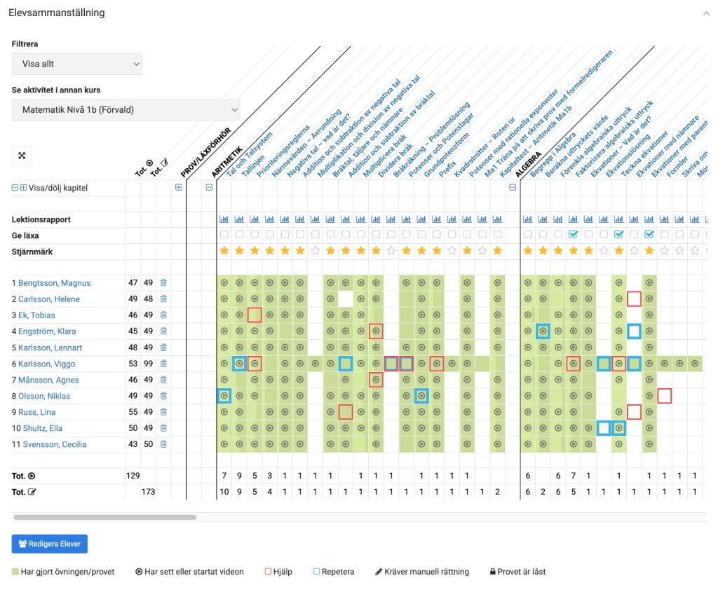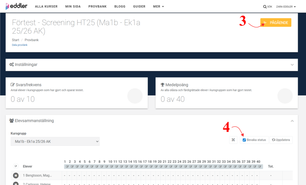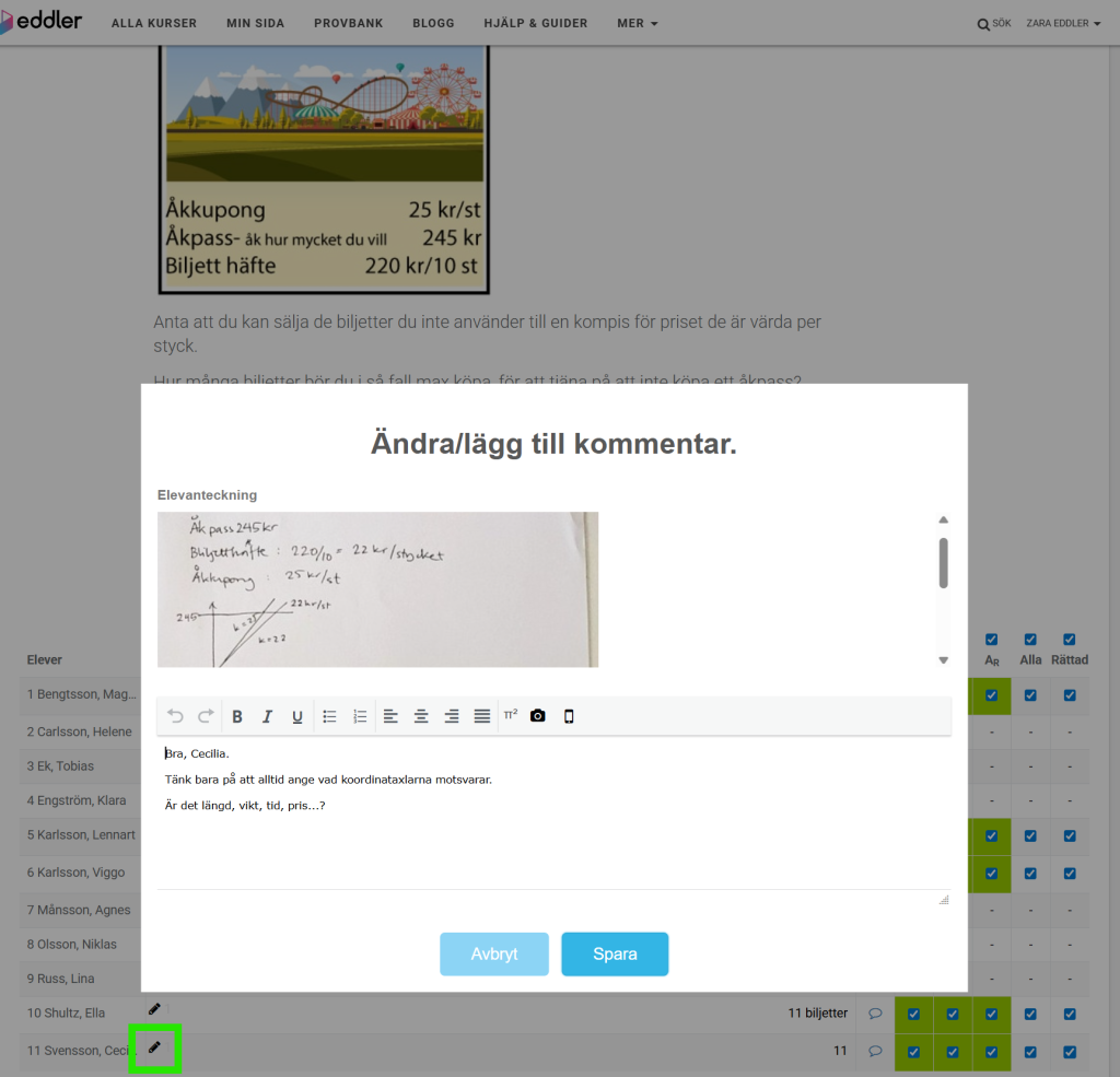 - Klicka på penn-ikonen ovanför listan med eleveenas namn