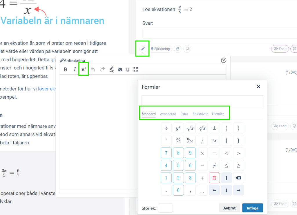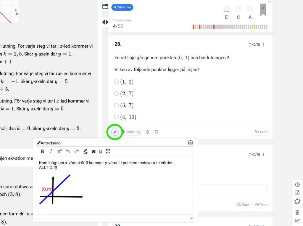 - Anteckningsyta att skanna in eller skriva lösningar direkt i systemet