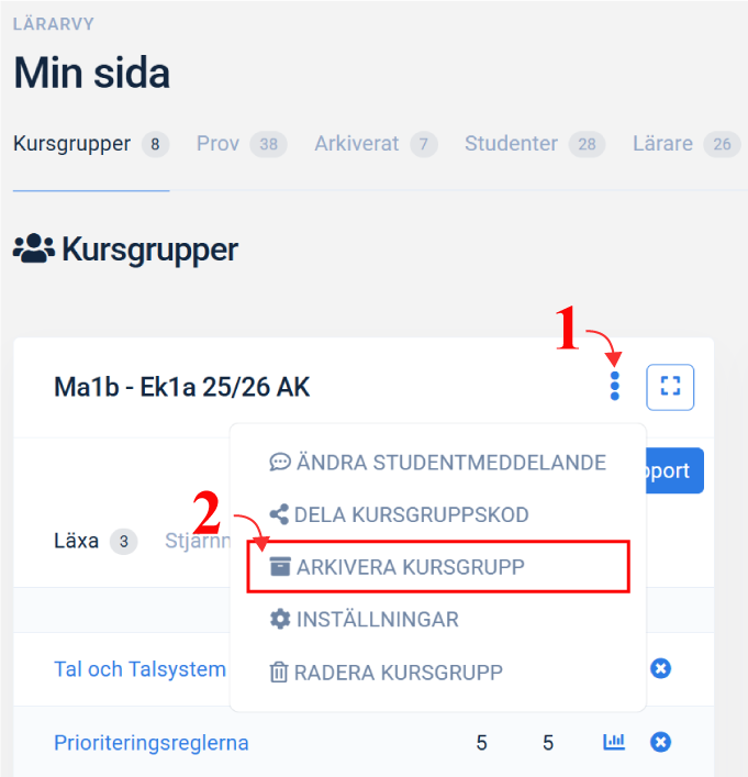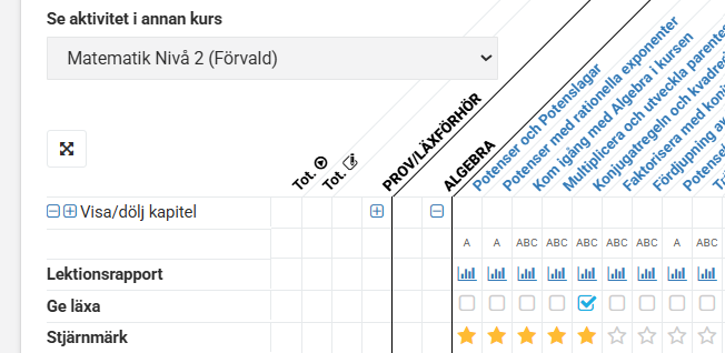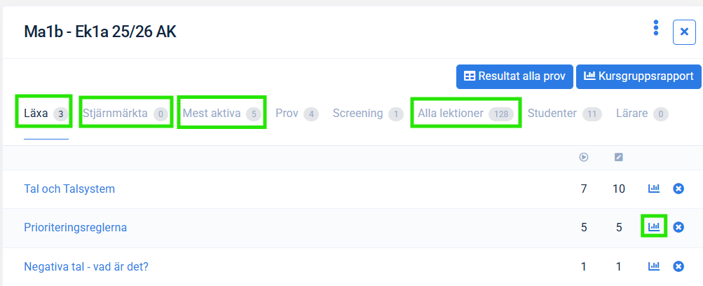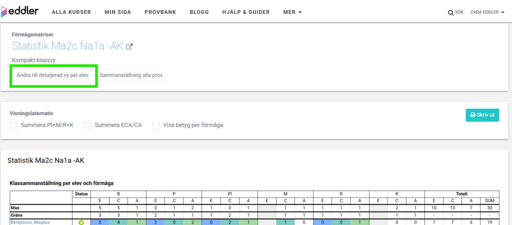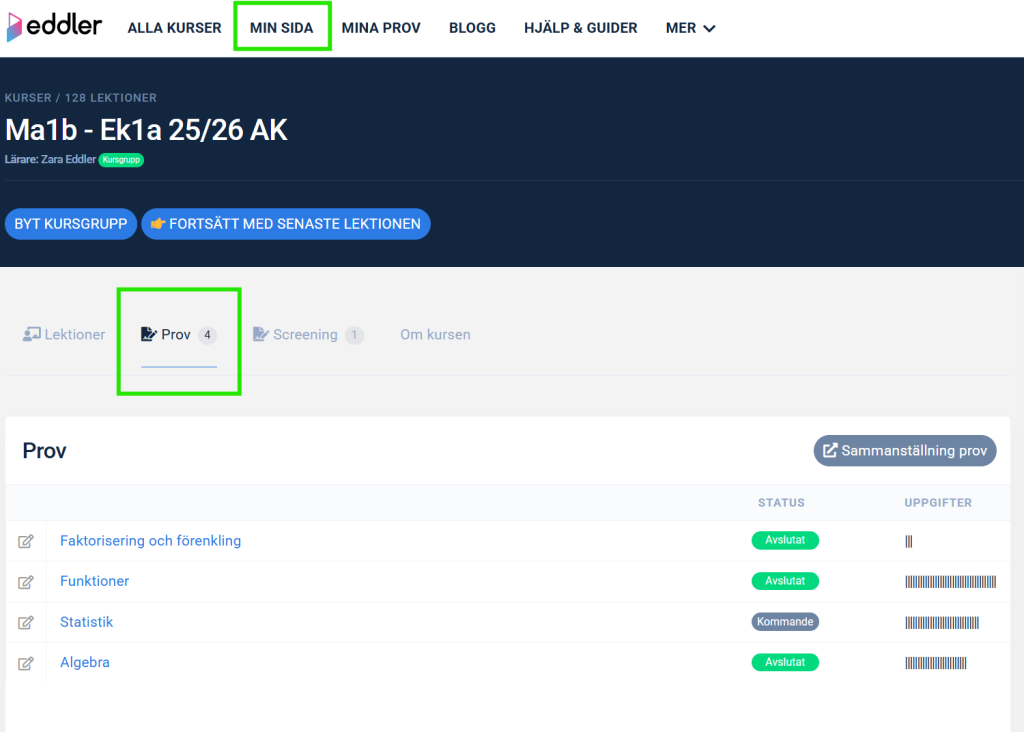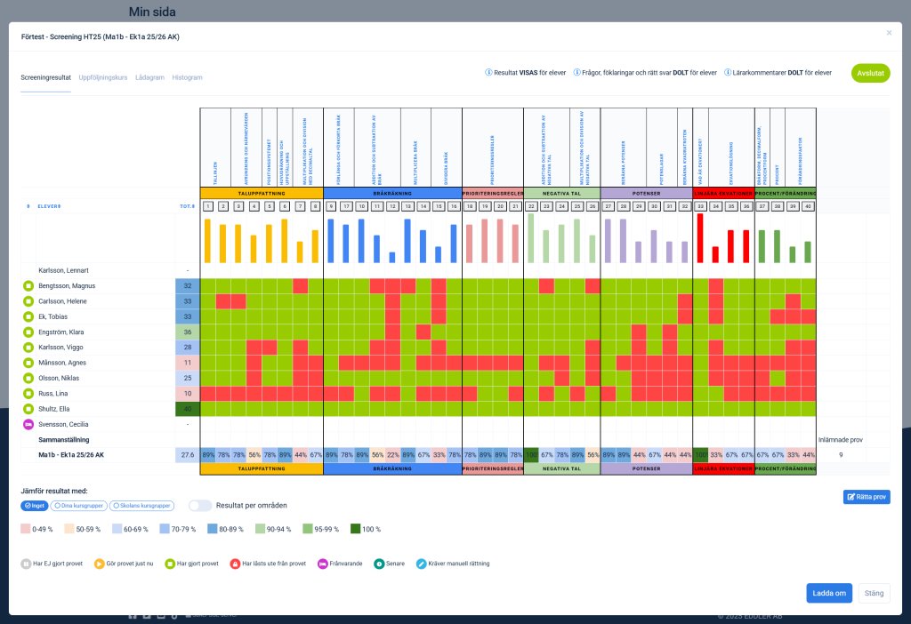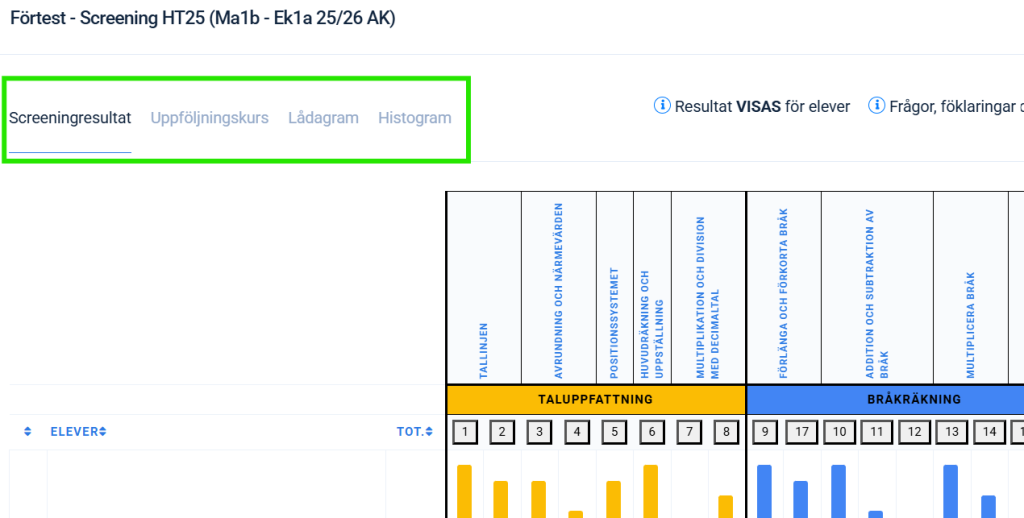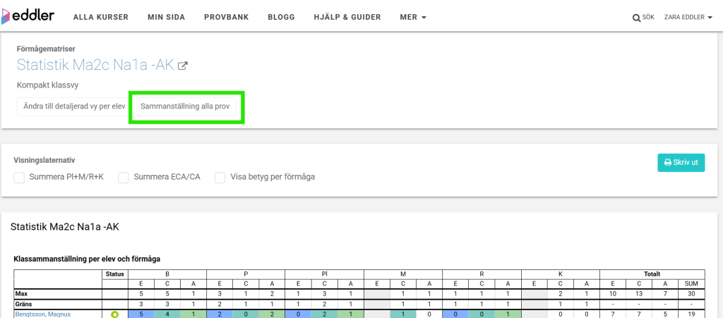 - Gå till provets Elevsammanställning.