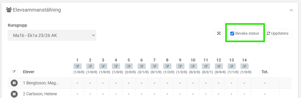 Nu ändras ikonerna framför alla elevers namn till