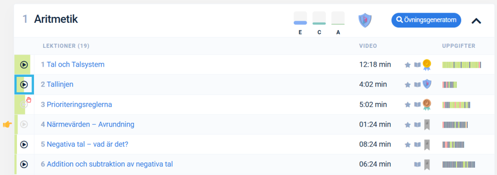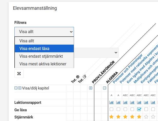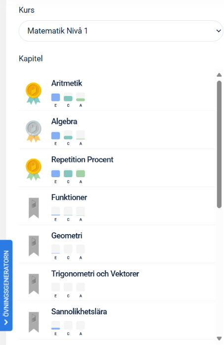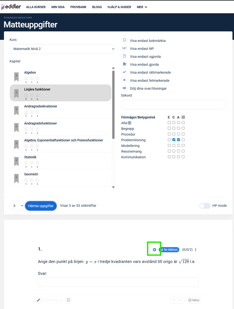- Övningsgeneratorn där du kan filtrera fram önskade uppgifter