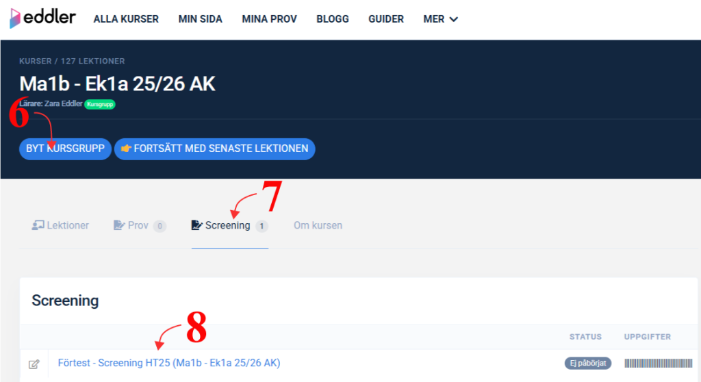 - Eleven måste tillhöra kursgruppen som provet är kopplat till.