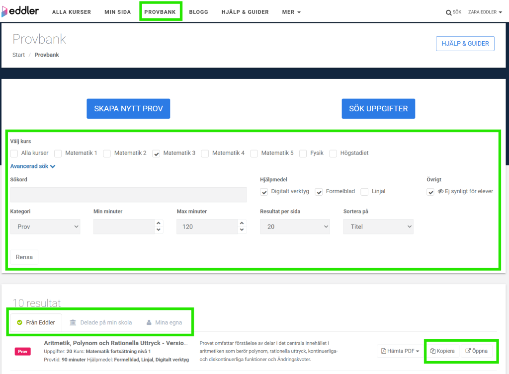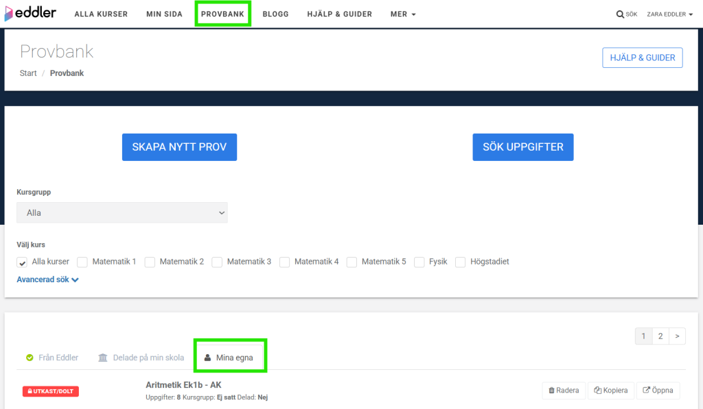 Rätta prov med Eddlers provverktyg