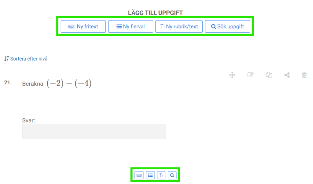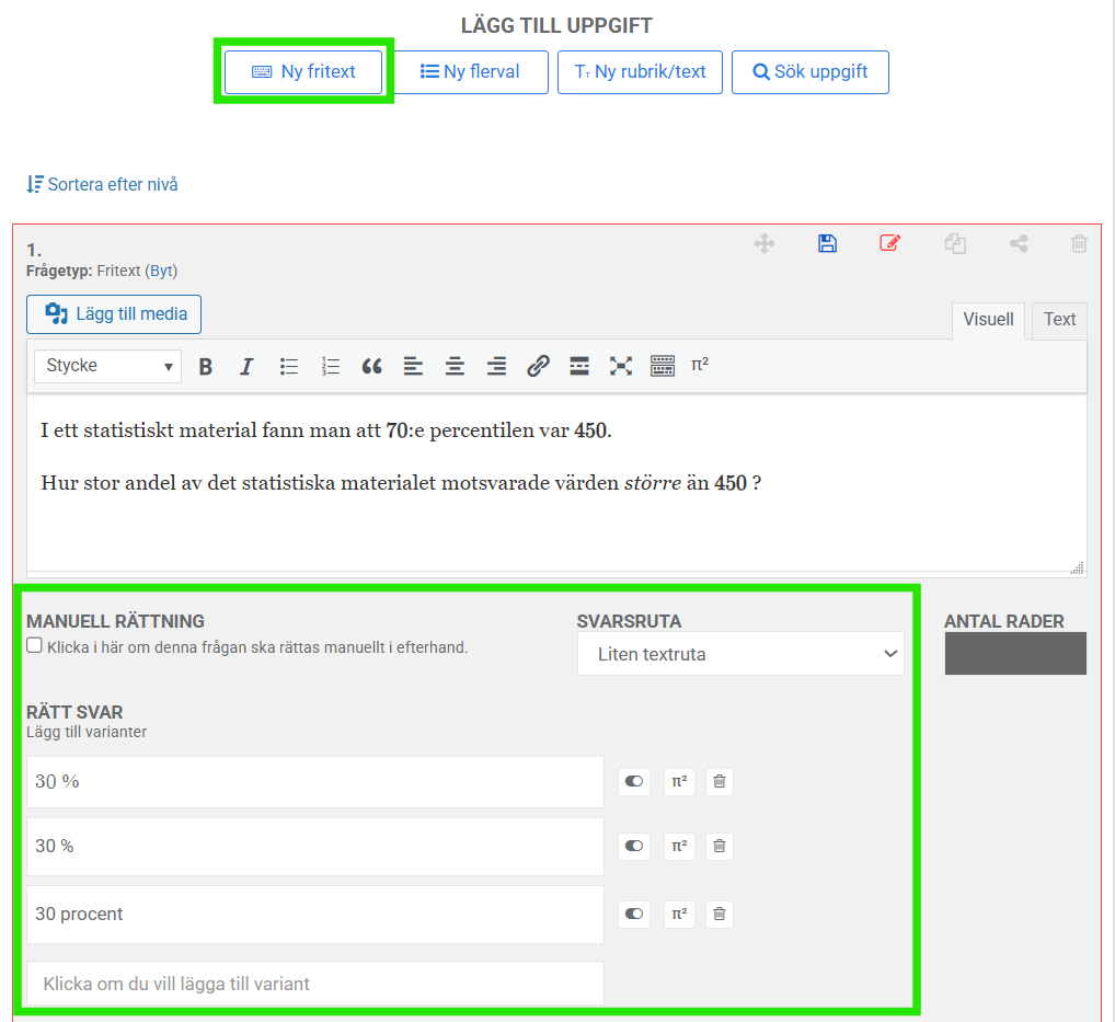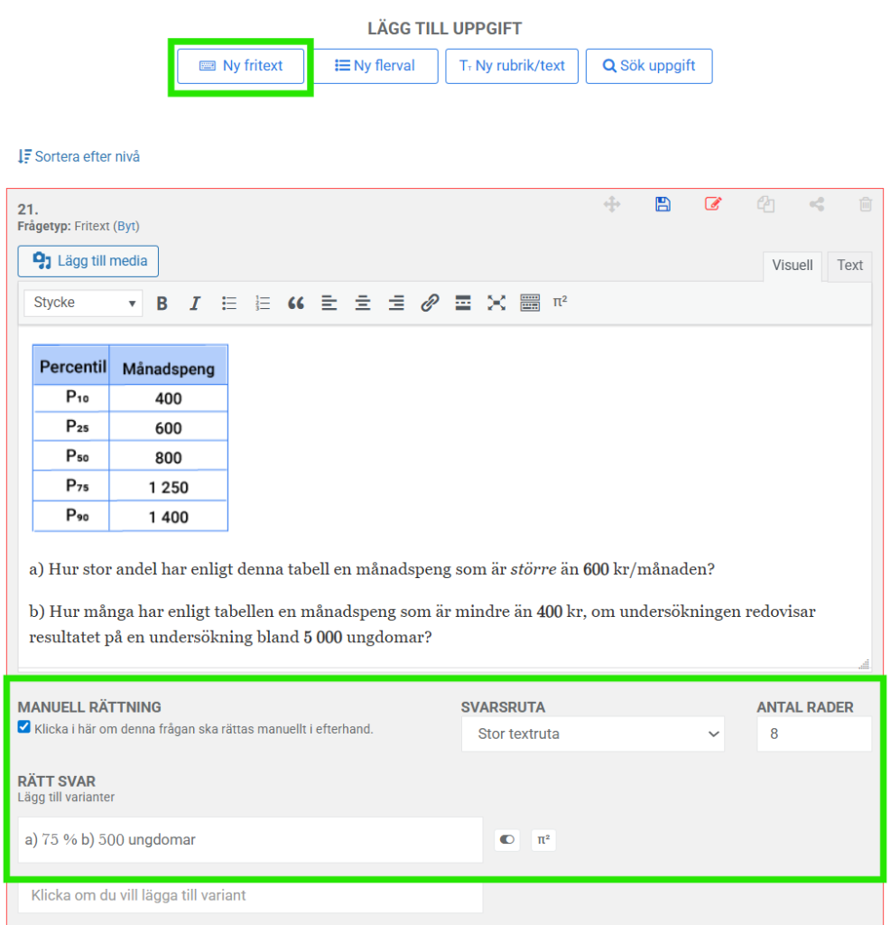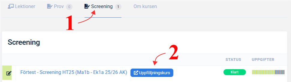 - Klicka på under uppgiftens nummer för att öppna rättningsläget för en specifik uppgift.