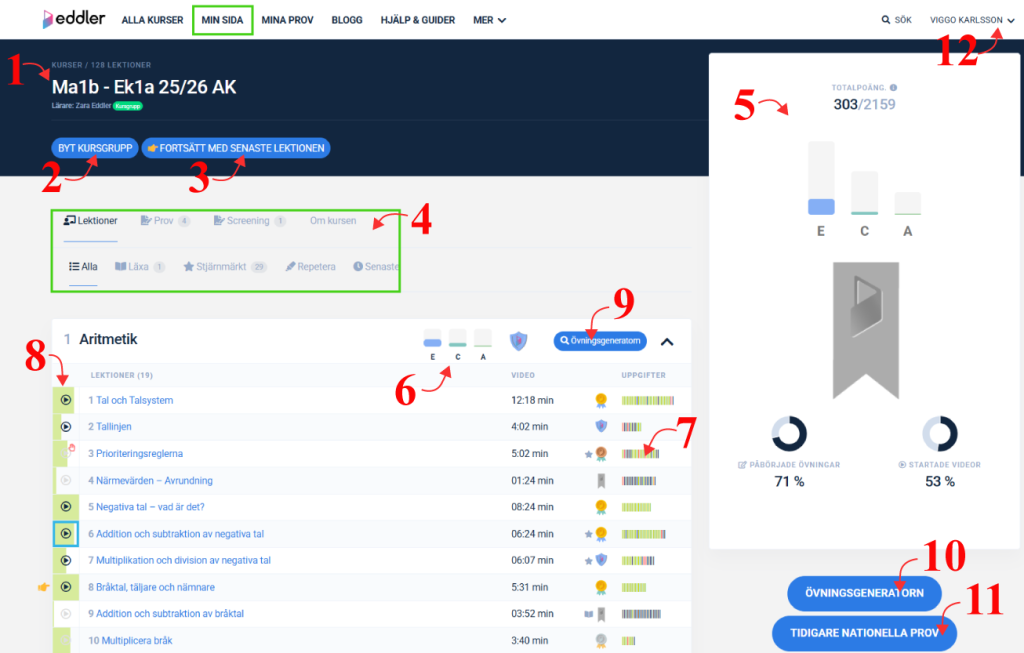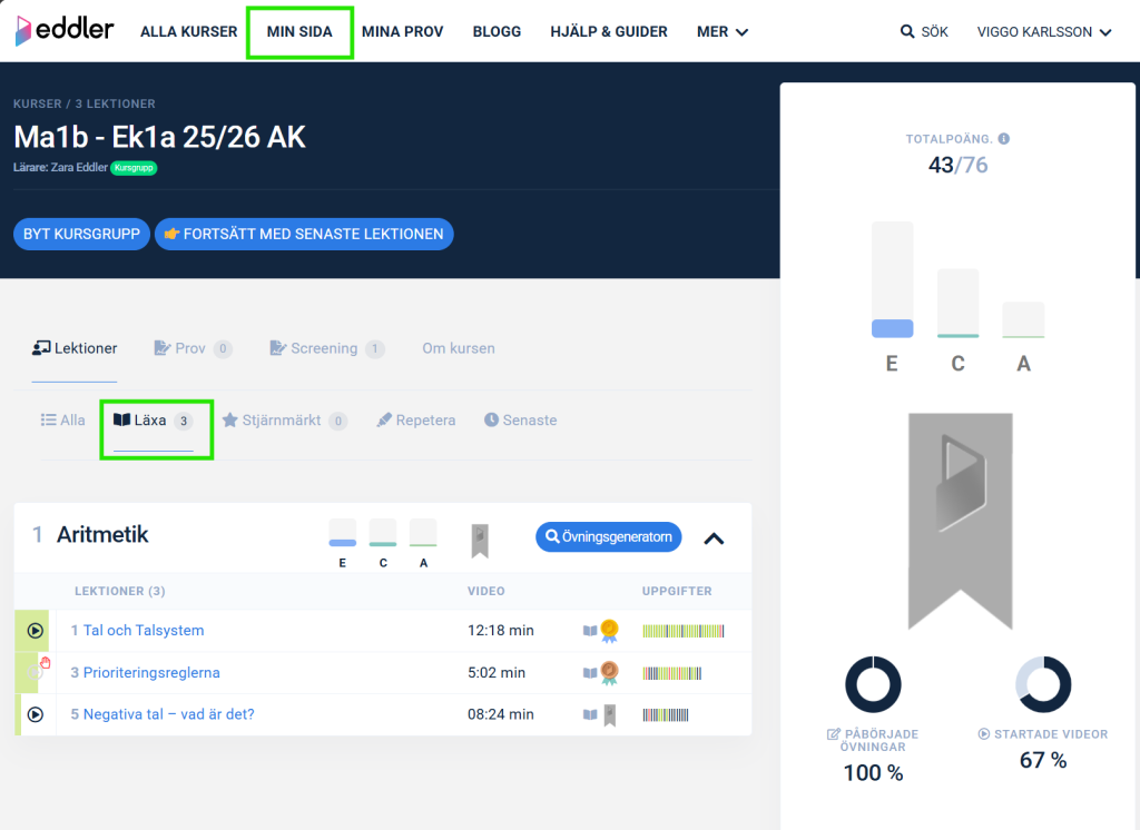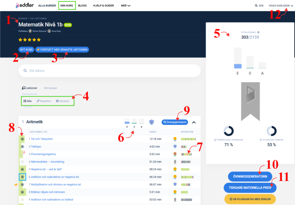 Eddler Premiumkonto ger dig full tillgång till alla våra kurser, lektioner, övningar och kapiteltest på samma gång. På så sätt kan du lätt repetera tidigare kursinnehåll och blicka framåt.