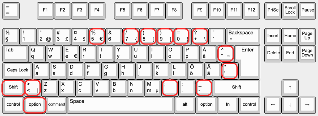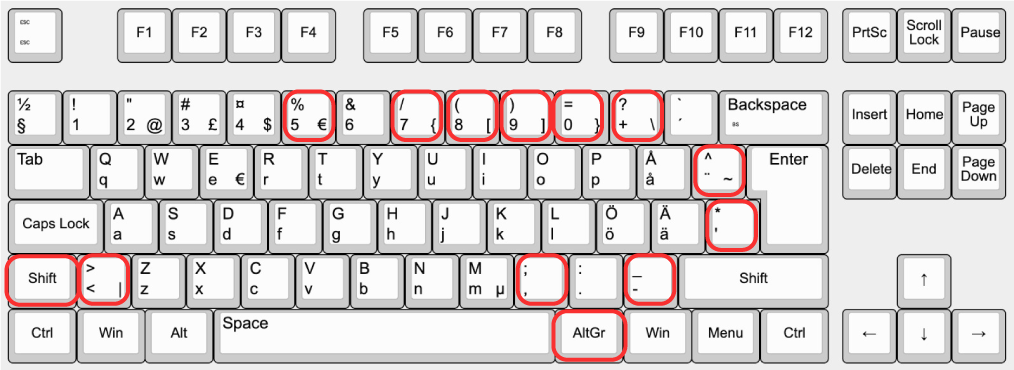 - ALT GR-tangenten – sitter nere till höger. Ibland är den bara märkt med ALT.