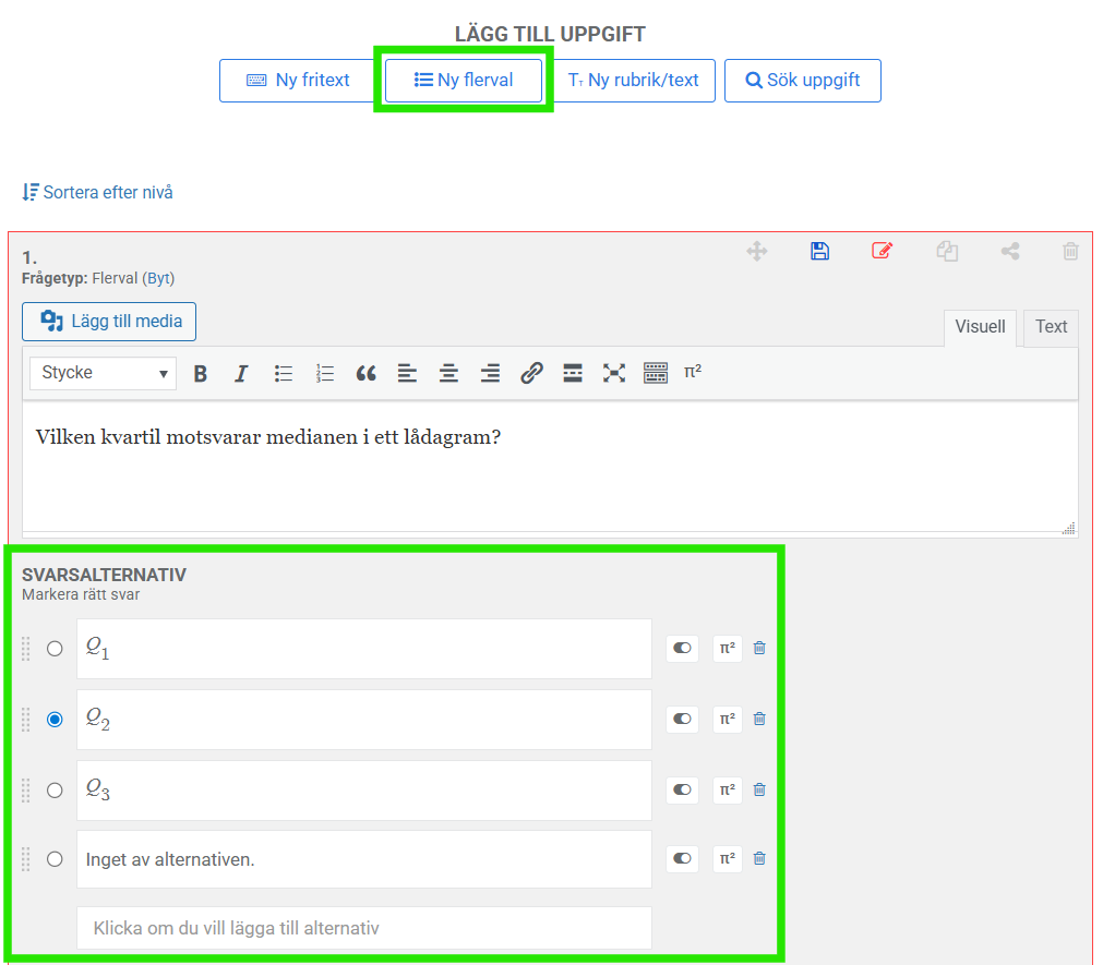 Grönmarkerade övningar = rätt