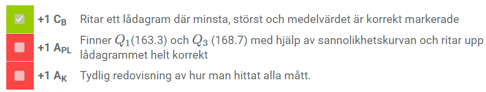 - Bedöm uppgifterna genom att klicka i checkboxen för respektive poäng i bedömningsanvisningen.