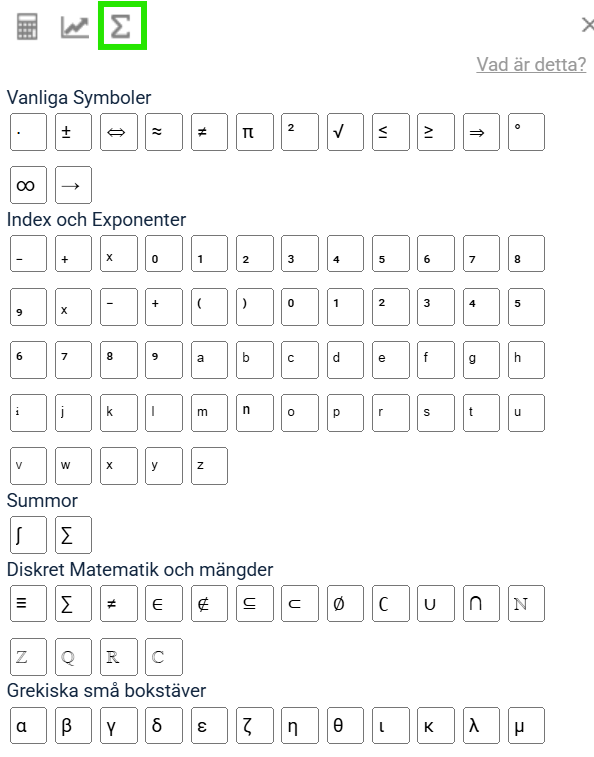 | Upphöjt till | $x^2$ | SHIFT | ^ |