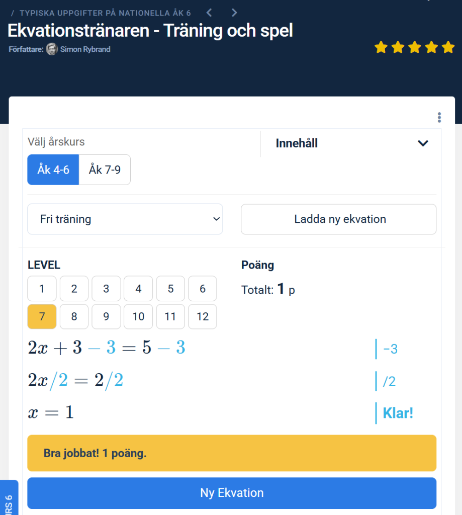 Ekvationstränaren – Träning och spel