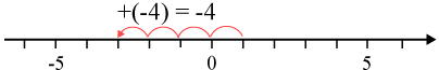Vi kan på tallinjen illustrera detta genom att vi utgår från talet $1$1. Att addera $-4$4 är detsamma som att subtrahera med $4$4 vilket innebär att vi förflyttar oss fyra steg åt vänster på tallinjen.