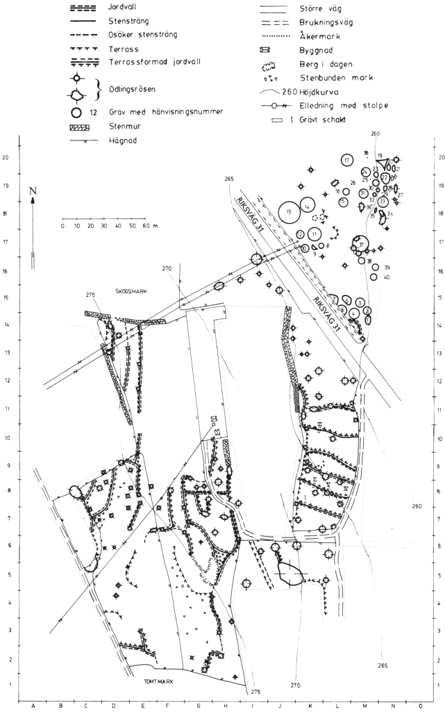 Fynd av bland annat odlingsrösen och gravar vid en arkeologisk undersökning i Nöbbele, Kronobergs län, 1980–81.
