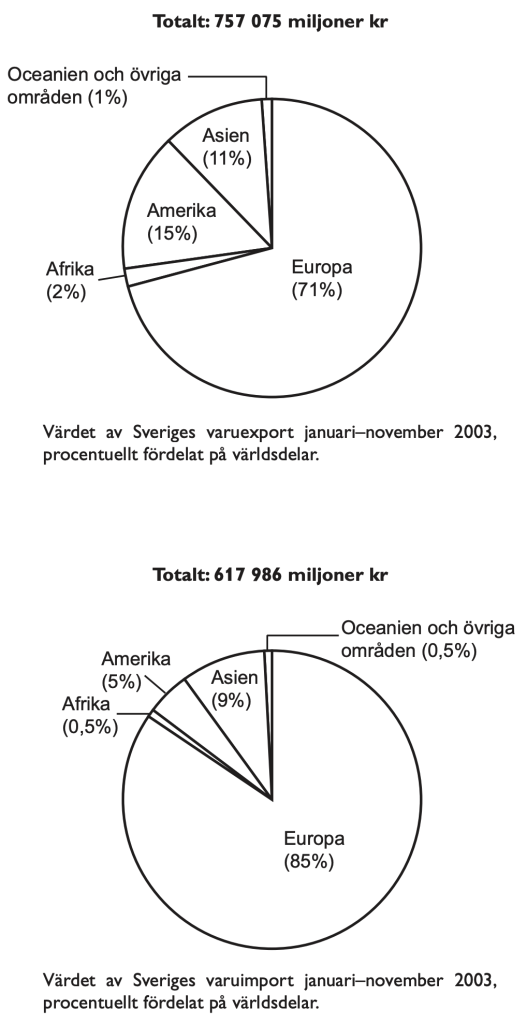 Hur många procent större var värdet av Sveriges export jämfört med värdet av Sveriges import?