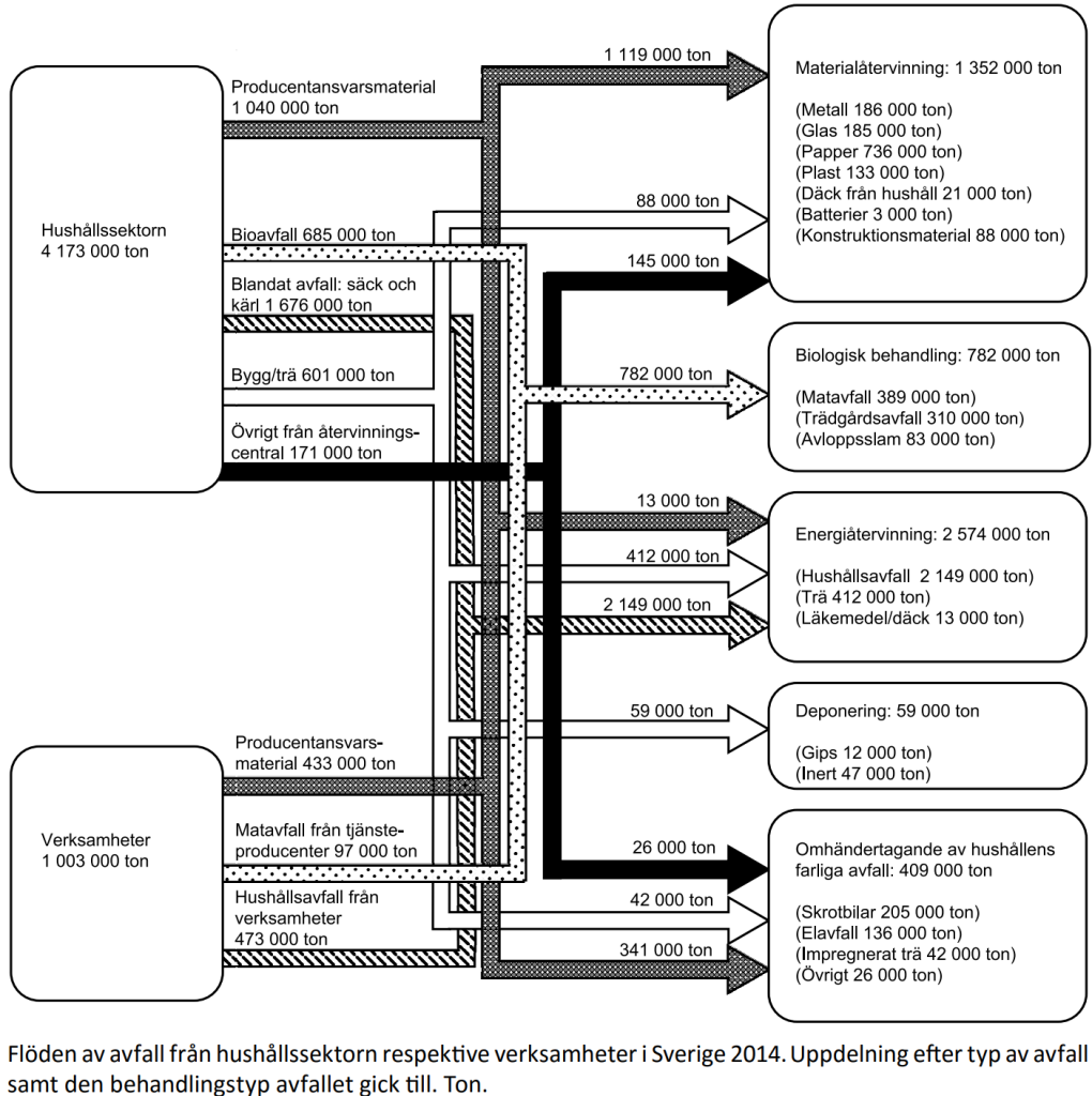 Identifiera den behandlingstyp som den största respektive näst största mängden avfall gick till. Hur stor var skillnaden mellan dessa två behandlingstyper?