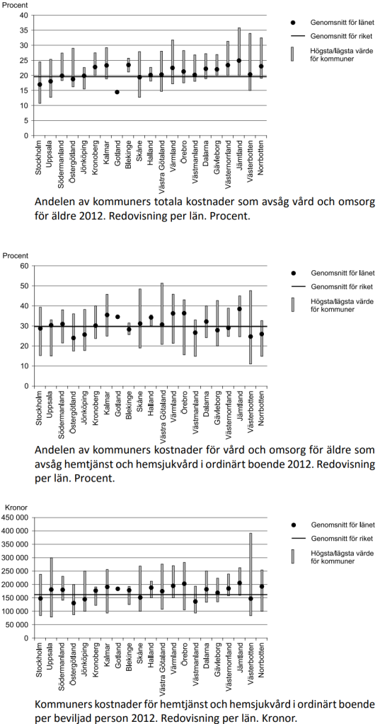 Studera kommunernas kostnader för hemtjänst och hemsjukvård per beviljad person. Vilken var den största skillnad som noterades mellan kommuner inom ett och samma län?
