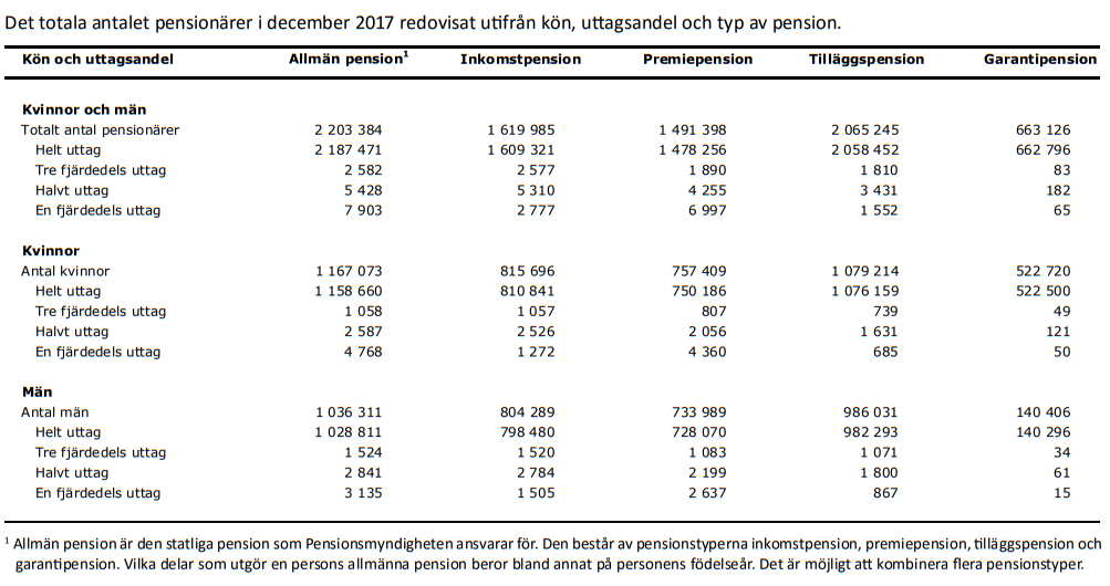 Studera antalet pensionärer med halvt respektive en fjärdedels uttag av tilläggspension. Hur många fler var männen än kvinnorna sammanlagt i dessa två grupper?
