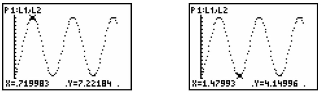 I följande figurer visas bollens läge $s$s som funktion av tiden, och värden finns angivna vid samma två tidpunkter: