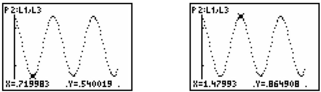 I följande figurer visas kraften $F$F som funktion av tiden, och värden finns angivna vid två tidpunkter: