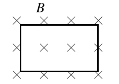 En rektangulär slinga av metall är placerad i ett magnetfält enligt bilden.