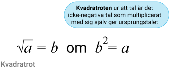 Kvadratroten ur talet $a$a är det icke-negativa talet $b$b, vars kvadrat är lika med $a$a.