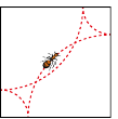 e) Om myran inte får korsa sin egen väg kan cirkelbågarnas radier inte ha vilka längder som helst. Undersök vilka radier som är möjliga i en kvadrat med sidan $12$12 m.