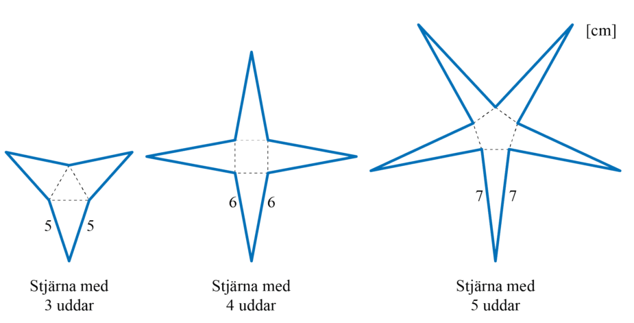 Figurerna visar stjärnor i ett mönster. Varje udd består av en likbent triangel.