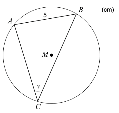 I en cirkel med diametern 10 cm och medelpunkten $M$M är en triangel $ABC$ABC inskriven så att triangelns alla hörn ligger på cirkelns rand.