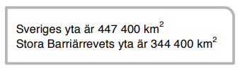 Leo påstår att Stora Barriärrevets yta är ungefär $\frac{3}{4}$34 av Sveriges yta. Har Leo rätt?