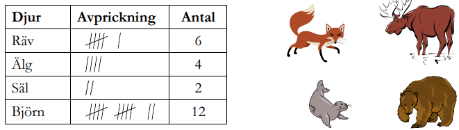 Läraren har berättat om några djur i Sverige. I slutet av lektionen frågar läraren