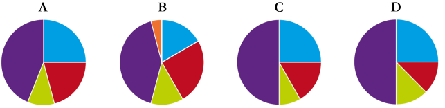 c) Vilket cirkeldiagram visar undersökningens resultat?
