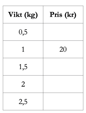 b) Vilka två påsar har samma pris per kilogram?