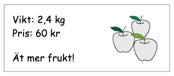 e) Kevins mamma har köpt en sorts äpplen. På påsen sitter en lapp där det står: