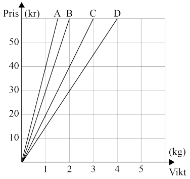 Diagrammet visar priset per kilogram för fyra frukter i en affär.