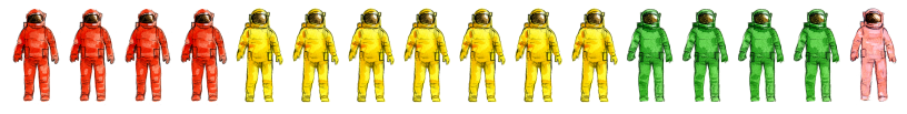 Det finns $4$4 röda, $7$7 gula, $4$4 gröna och $1$1 rosa rymdgubbe.