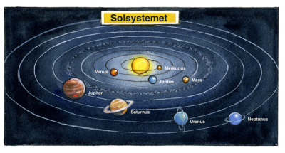 I klassrummet finns en bild med vårt solsystem.